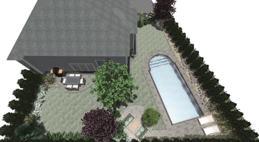 A tiny garden with a huge pool, how to make sure it doesn't dominate the entire plot? The problem of small space and many expectations was solved by a small island of greenery, creating an openwork wall of plants that isolates the terrace by the house from the bathing area.