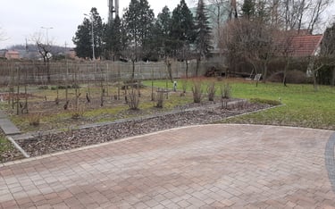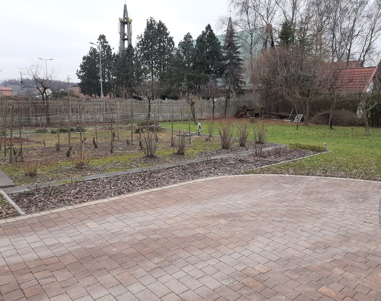 Rabata pięknie odnosi się do istniejącego podjazdu i okazała się niezwykle zajmująca dla najmłodszych ze względu na wycieczki po krawężnikach, które przy tych wysokościach, są zupełnie bezpieczne.