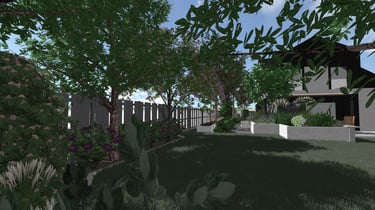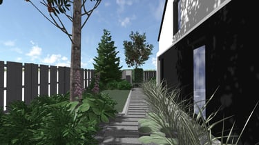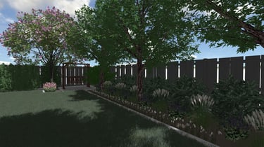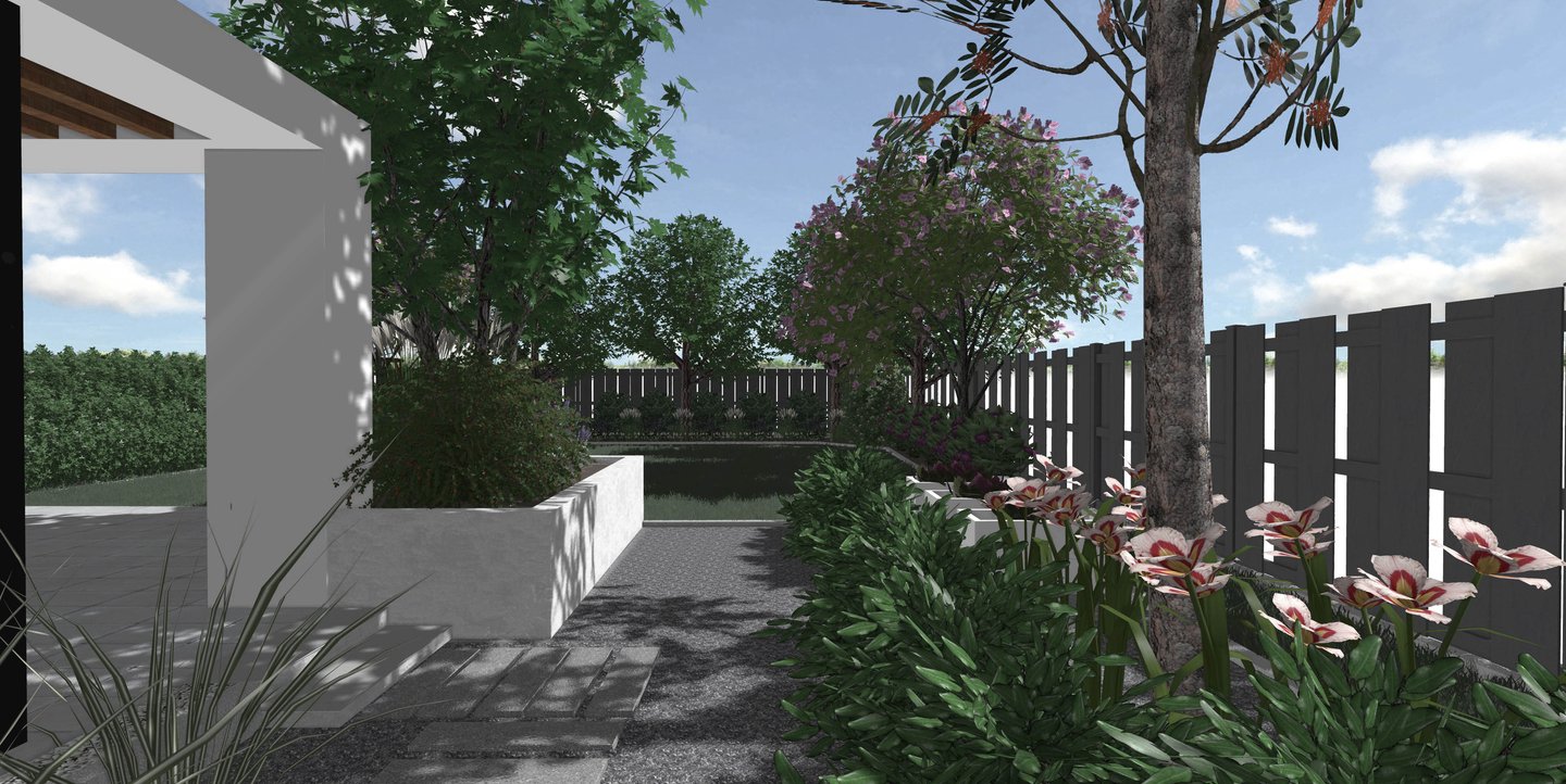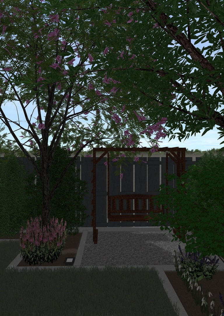 Ten ogród nie zmienia się intensywnie podczas zmian pór roku. Jest statyczny i harmonijny.