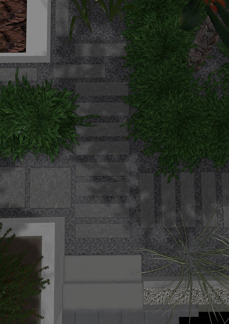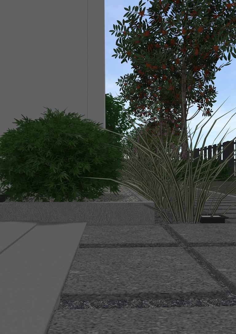 Minimalistyczny ogród traktuje przedmioty ożywione jak i nie ożywione, jako architektoniczną formę. Porowatość betonu nawierzchni jest tu tak samo ważna jak błyszcząca powierzchnia liści.