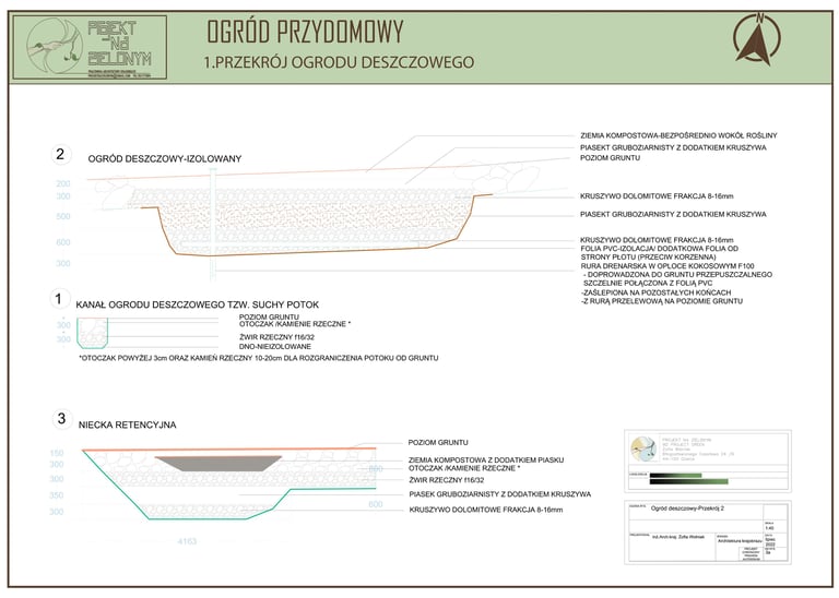 Zarządzanie opadami w tym wypadku stanowi główne zagadnienie projektowe, wspierając jednocześnie aspekt ekologiczny założenia.