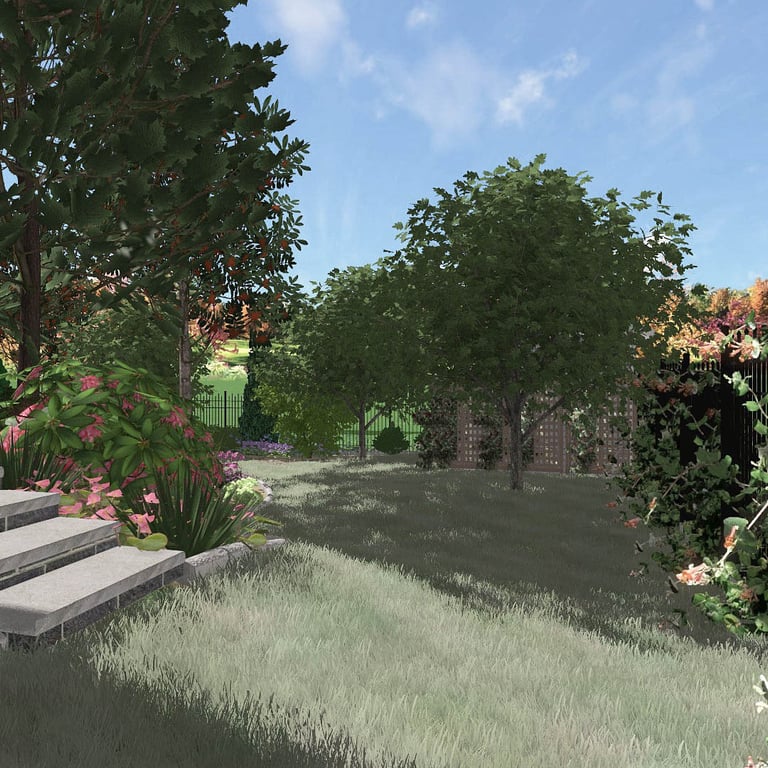 Wymagająca działka staje się niezwykle atrakcyjna dzięki malowniczym skarpom, i meandrującemu strumieniowi doprowadzającemu wodę do otwartych wgłębień, powoli rozsączających wodę opadową do gleby, a w konsekwencji do wód podziemnych, których niski poziom alarmuje do pochylenia się nad tym problemem.